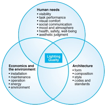 Die Lichttechnik tat sich mit dem Qualitätsverständnis besonders schwer. Lichtqualität kam erst 2021 in das seit 1938 existierende Internationale Wörterbuch der Lichttechnik (hier). Die heutige Präsidentin der CIE ist stolz darauf, dies bewerkstelligt zu haben. Zuvor hatte sich ein Ausschuss der LiTG (heute Deutsche Gesellschaft für LichtTechnik + LichtGestaltung) vergeblich um die Qualität des Lichts bemüht, was man an der internen Bezeichnung der zuständigen Kommission (Qual-Ausschuss) erkennen kann. Da mir das Ganze hat die Hutschnur hochgehen lassen, habe ich versucht, die Lichtqualität mithilfe eines bekannten Begriffs zu erklären, mit Gebrauchstauglichkeit alias Usability. Das Konzept habe ich hier erklärt.