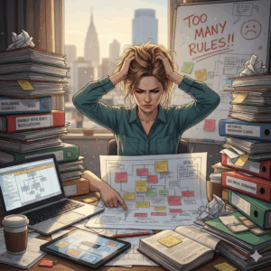 Das war aber noch Gold gegen einen, der von einem großen Unternehmen den Auftrag geholt hatte, ein Büro für 40 Personen, damals Großraumbüro genannt, heute würde man eher Open Space sagen, allen gesetzlichen und normativen Regeln entsprechend zu sanieren. Dazu war der Arbeitgeber vom Bundesarbeitsgericht verdonnert worden. Meine Rolle war die des Beraters, der am Ende das Ergebnis bescheinigen würde. Mir und dem Auftragnehmer, einem Architekten, war die Aufgabe per Auftragsverhandlungen bekannt.